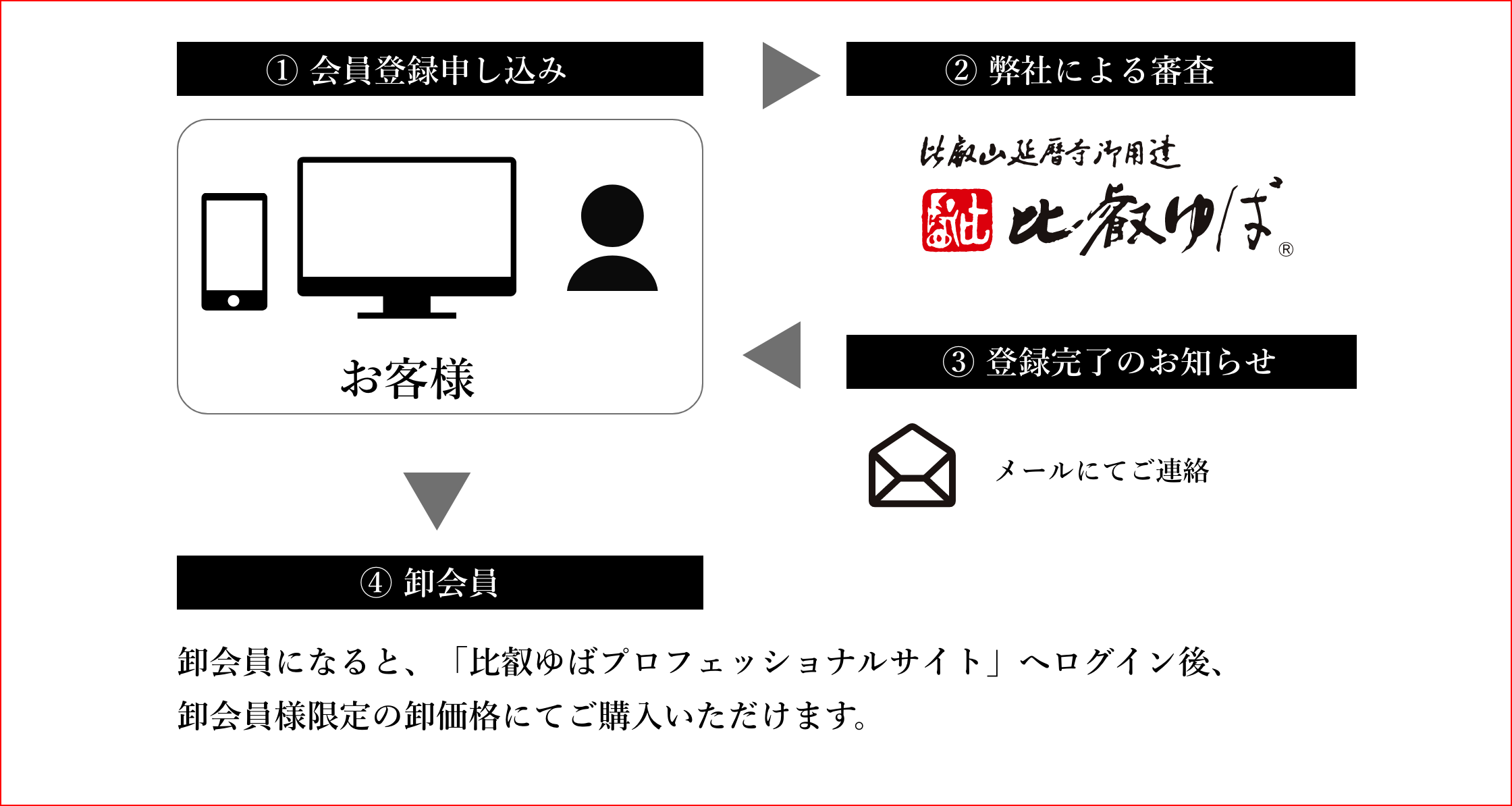 ※「比叡ゆばプロフェッショナルサイト」は卸会員様専用のお買い物サイト(卸サイト)のため、ご購入には卸会員登録が必要です。